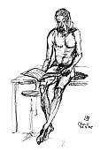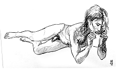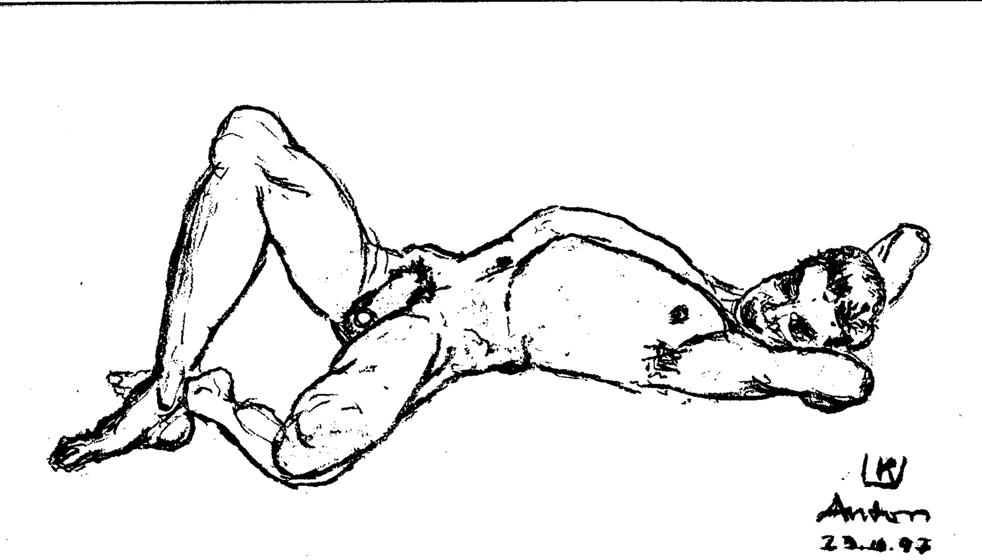 Chris, auf Tisch lesend 1998 Bleizeichnung 42x26