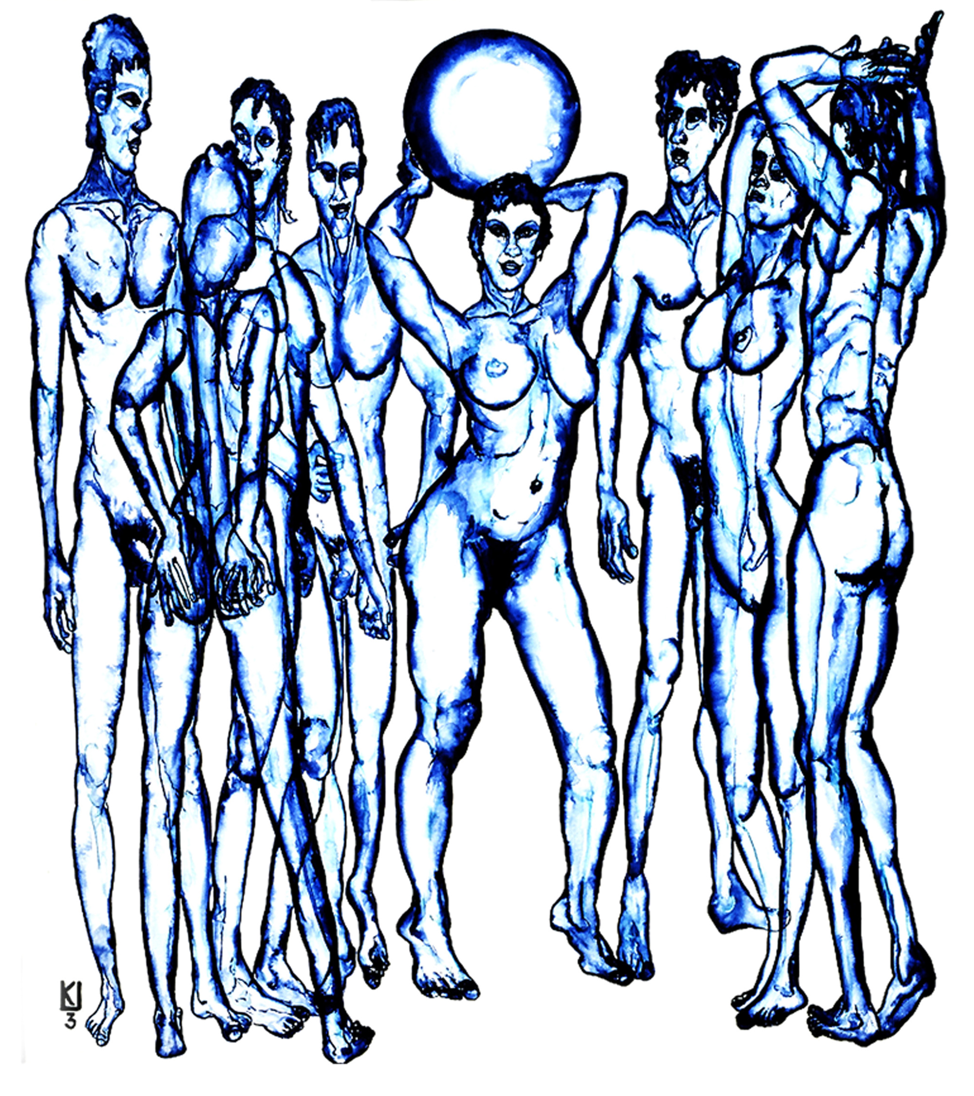 Sich Zierende 1998 Sepiazeichnung 79x32