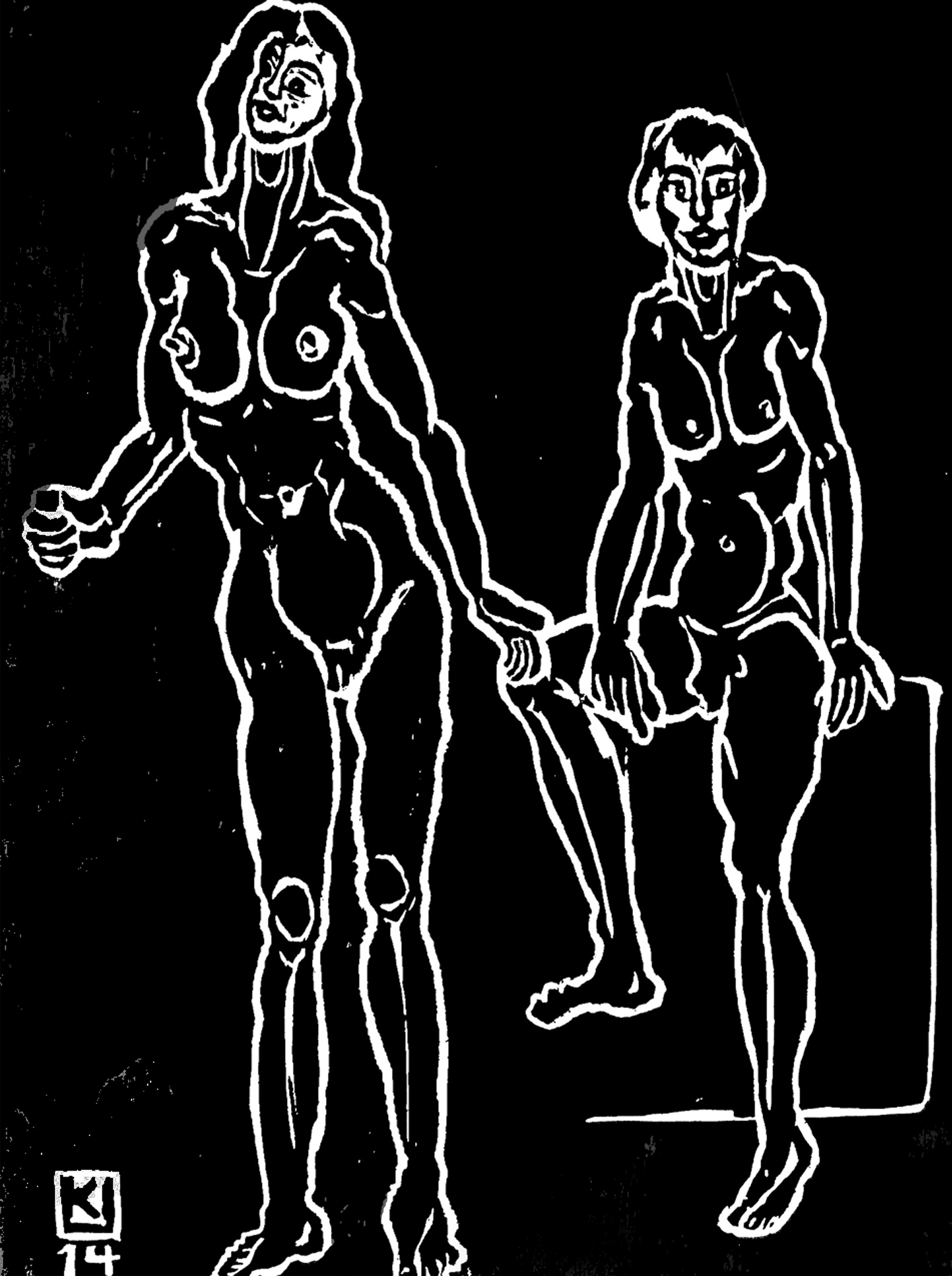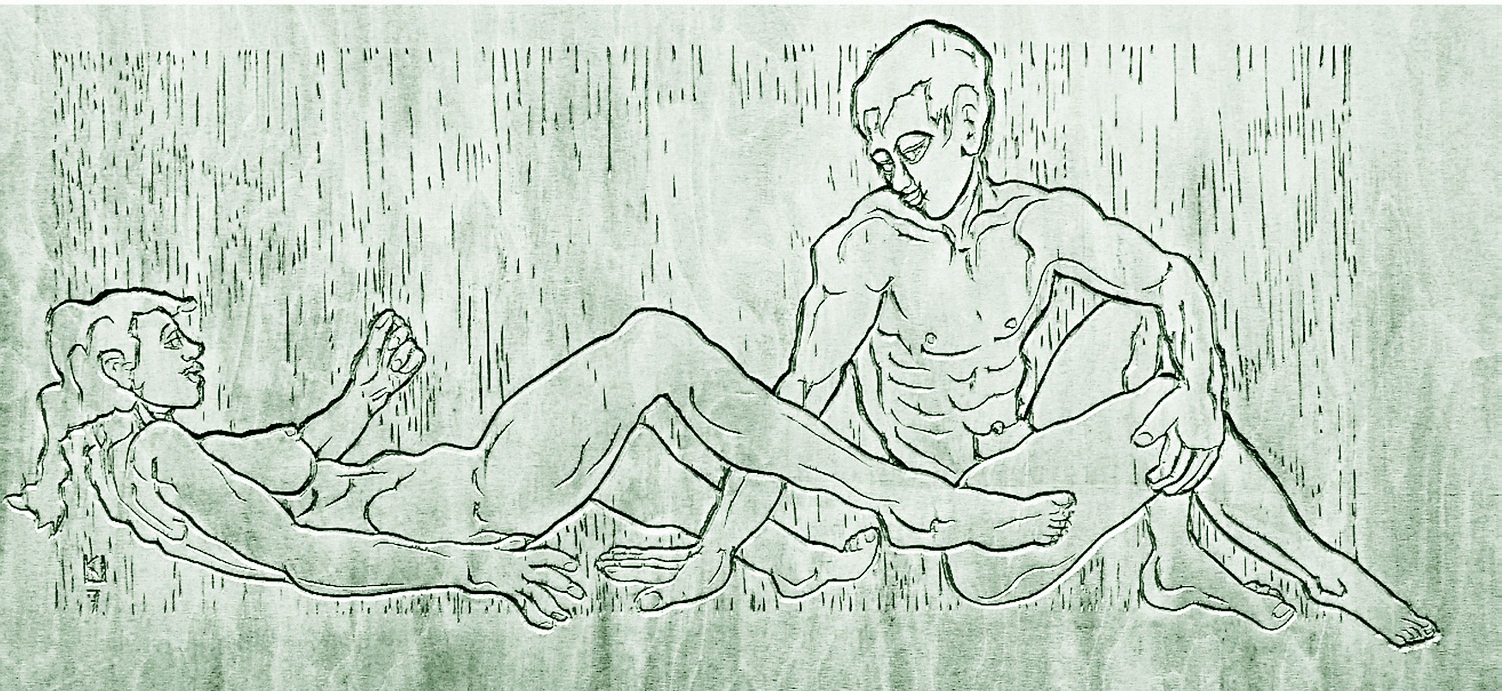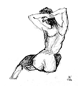 David + Bathseba am Stümpelbad 1998 Federzeichnung 40x35