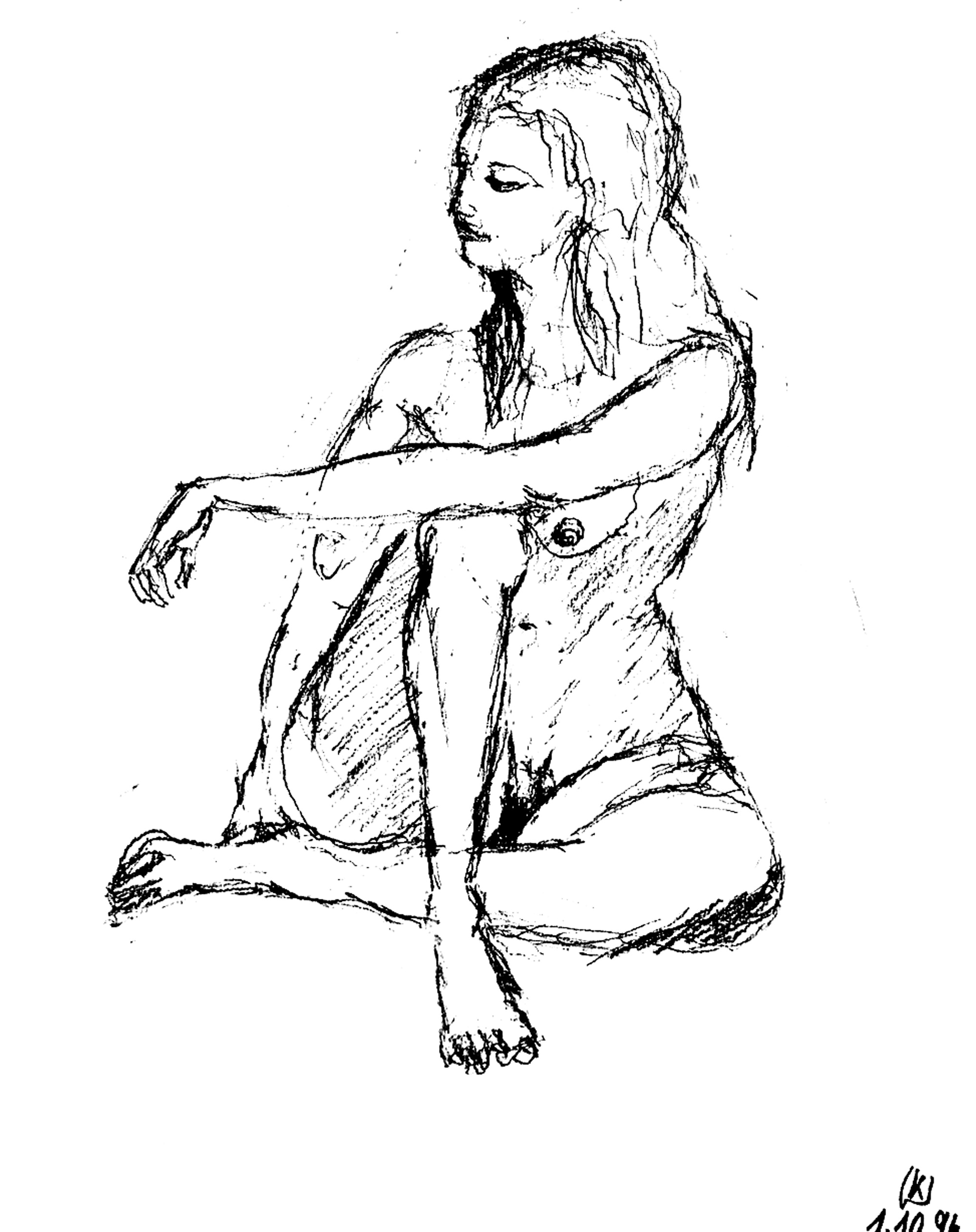 Bodensitzende, Arm auf Knie 1996 Bleizeichnung 36x32