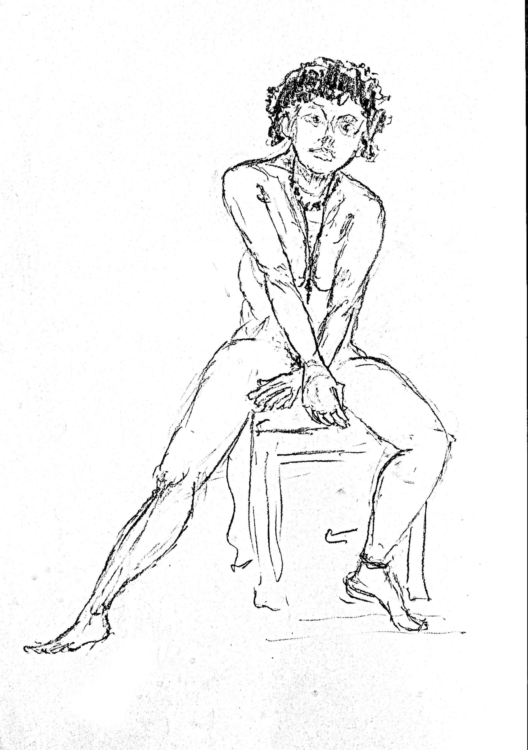 Frau auf Stümpelbank 1998 Contéstift 26x21