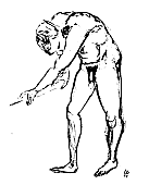Bodenkauernde, Kopf unten o. J. Tusche laviert, 19x38