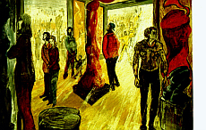 Im Stümpelmuseum 1998 Öltempera a. Pappe 110x150