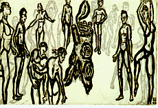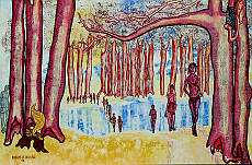 5 Stümpelwesen 1998 Mischtechnik a. P. 34x68