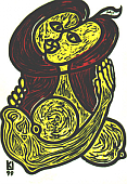 Zweigesicht 1999 farbiger Holzschnitt 27x19