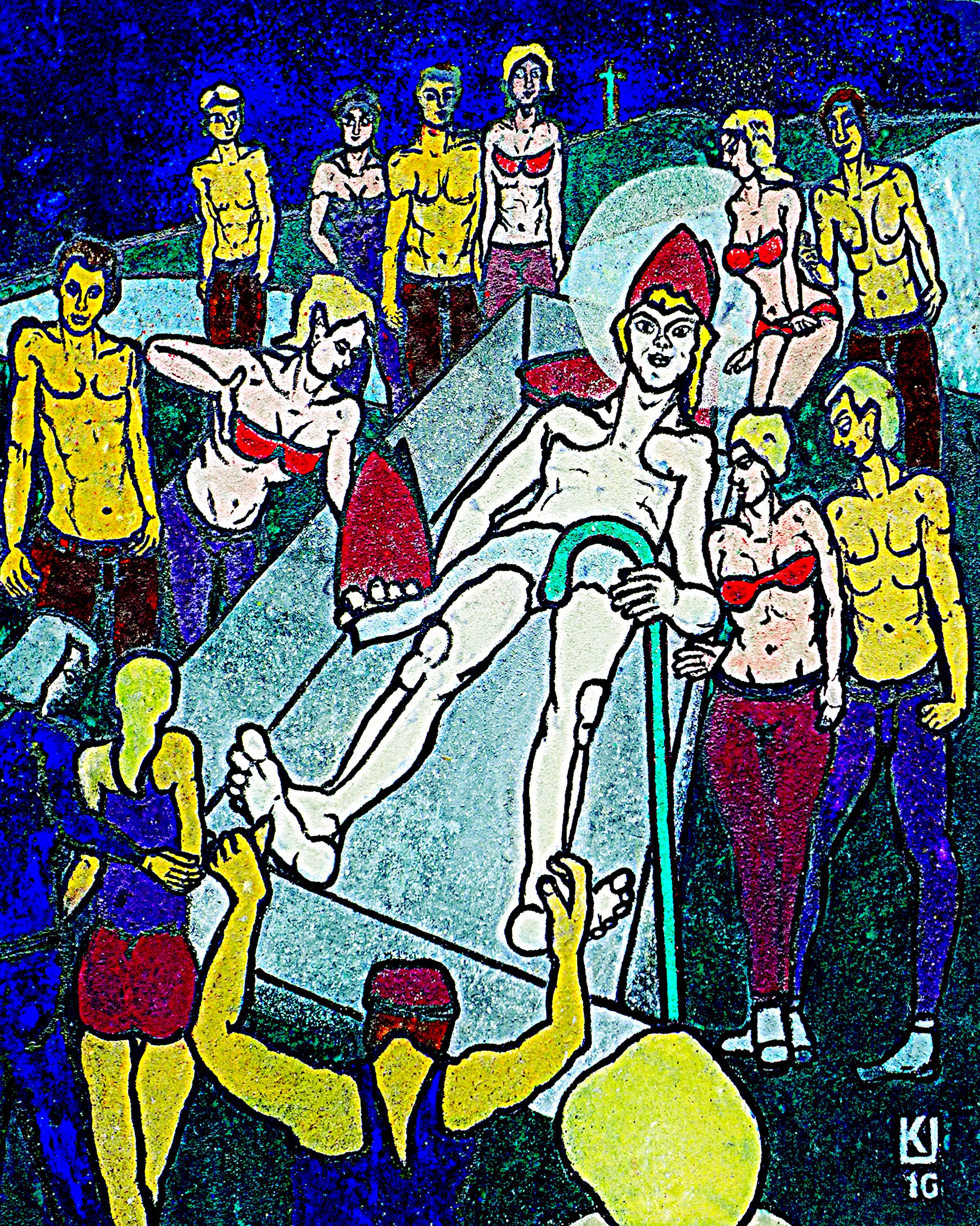 Maternus Anlandung 2016 Digitpulvus auf Holz 100x80