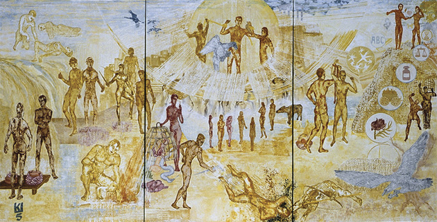 Prometheus’ Weg 2005 Öltempera a. Lw. 160x300 (dreiteilig)