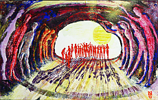 Einzug 1999 Öltempera a. K. 74x280