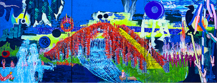 Astroider Kosmos (Triptichon) 2015 Öltempera a. Lw. 270x180