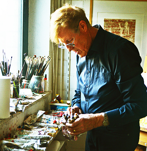 Klaus R. Uhlig in seinem Atelier und beim Malen unter freiem Himmel (2012)